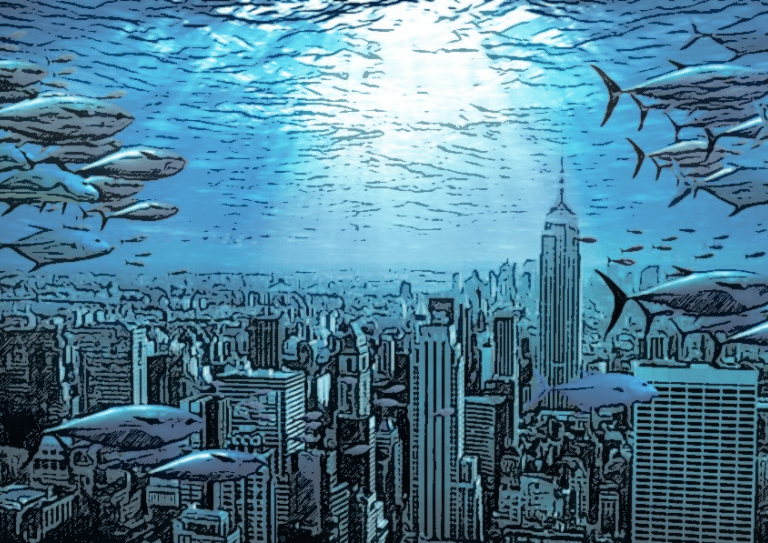 Deniz suyu yükselmeye, kıtaları lokma lokma yutmaya devam ediyordu. Okyanuslarda hızla artan termal genişlemede en büyük pay, doğal olarak Grönland ve Antartika’daki buzul erimelerine aitti. Projenin geliştirildiği sene, deniz suyu seviyesinde ortalama dört santimlik bir artış gerçekleşti.